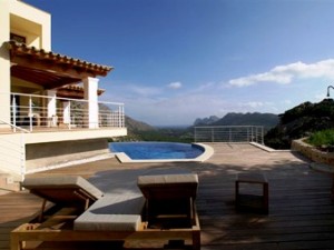 Stunning villa with amazing views over Cala San Vicente, the Bay of Pollensa and the Bay of Alcudia. This house has been constructed out of the best materials and is located in one of the prime spots in Pollensa: right at the top of the La Font urbanization. The house has been sympathetically designed to fit in with the surroundings and encompasses a natural rock stream bed which in the winter flows with water from the mountains, and in the drier months, offers pretty rock pools which could be made into an attractive and very unique feature.