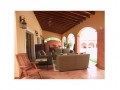 Outside, gardens with palm trees surround the house giving it a tropical air. There is a verandah at the side of the house and a further covered terrace with outside bar next to the swimming pool. Steps lead down to the swimming pool where you can enjoy the peace in complete privacy.