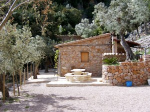 Olive grove and house with superb views of the mountains surrounding Fornalutx. Perching high up on the mountain side, this traditional olive grove has been well maintained and the house completely reformed only a year ago. Although small, the house has two bedrooms, one bathroom, a good sized living room - dining room and a small kitchen. It has exposed wooden beams, thick stone walls, and in one bedroom an exposed stone wall to add character.